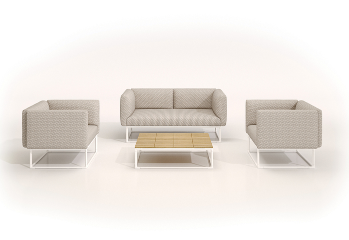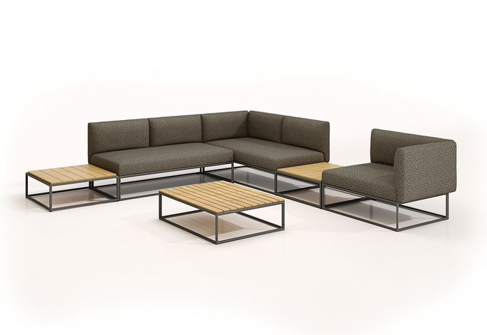 The Maya seating and table units take the principle of the iconic Cloud frame and refine it to reflect and enhance the sophistication of the new Gloster design philosophy. The frame is reduced in dimension and the ultra-slender powder coated aluminium profile connects to cast aluminium legs. Side and back cushions are subtly revised in profile and detail, and use a series of specially developed knitted fabrics by Sunbrella. Additions to the range include console tables and planters that allow for a series of living landscapes to be created outdoors. When the Cloud range was launched in 2010, it incorporated new thinking and technology in the design of the upholstered elements and made these as comfortable as their interior cousins. Cloud not only invented the ‘outdoor lounge’ category, it went on to define it. So how do you improve this? It is often easier for a designer to start again rather than take an existing design and make it better. This was the challenge; the gentle, but meaningful evolution of an existing idea. To distil and keep the spirit of the original, but refresh the aesthetic and expand its possibilities. The Maya system reflects and enhances the sophistication of the Gloster design philosophy. Particular attention has been given to the materials and technologies used that are at the forefront of outdoor furniture design. In addition to the subtle updates to the frame and cushion profiles, table units in new sizes have been added and can to be placed together in contrasting scales. This principle extends to the console tables which can incorporate a planting tray to further give variety to a living landscape.