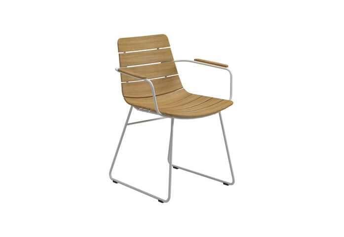 Das Design dieses Stuhls passt sich Ihren Formen an wie eine zweite Haut. Das William Design überzeugt mit leichten, pulverbeschichteten Rahmen und den charakteristischen, abgerundeten Teakholzlamellen. Für eine angenehme Haptik sind die Armlehnen mit weichem Teakholz versehen.
