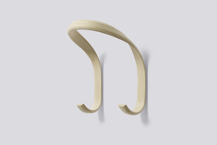 Hook is made from a steamed ash strip with integrated wall fixings.