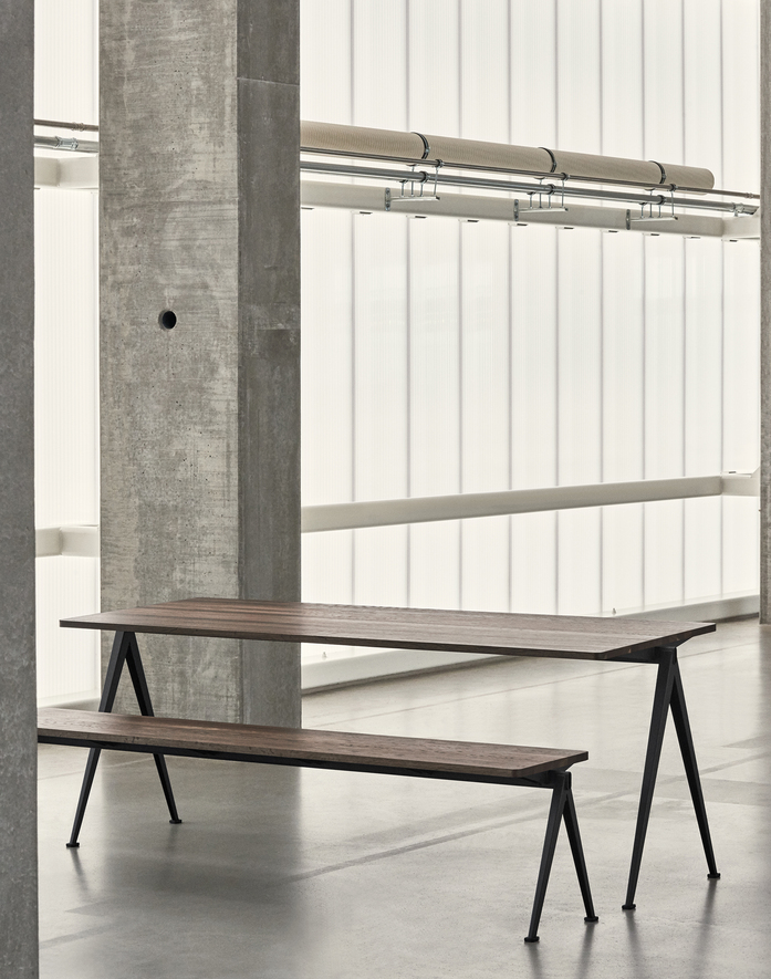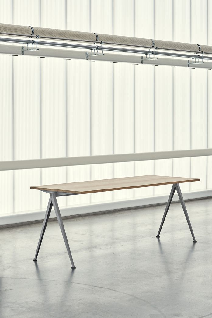 Created to be adaptable, light and strong, the Result Chair (1958) and Pyramid Collection (1959) are two examples of products that utilise the cutout sheet steel construction method of manufacture. The Pyramid Collection was designed by Wim Rietveld in the middle of the 20th century, while they worked at Ahrend.