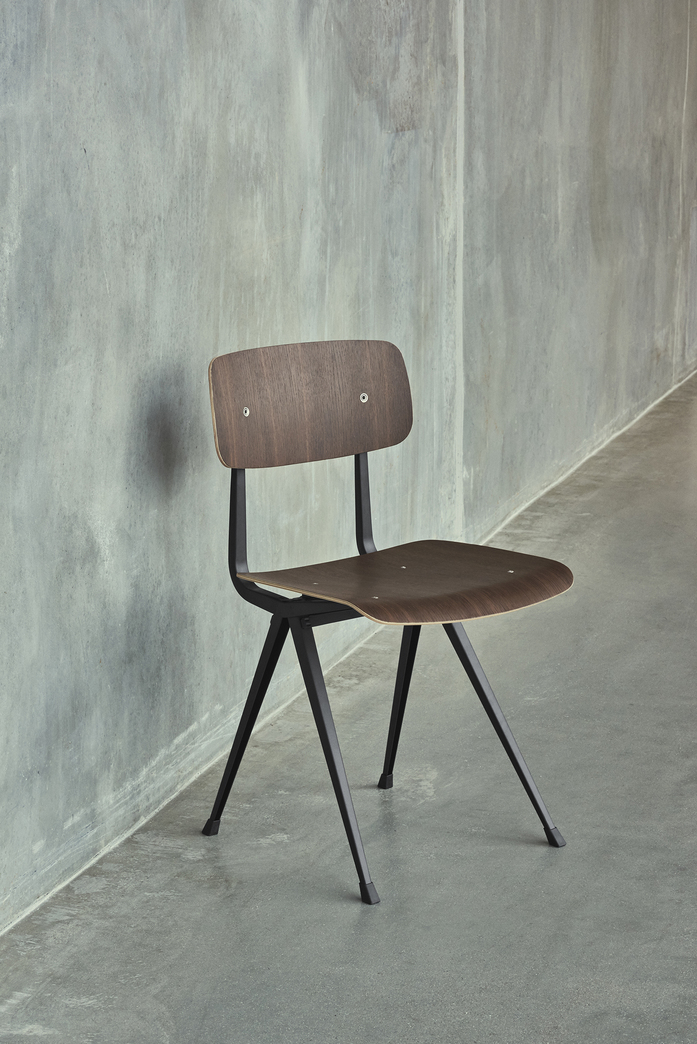 Created to be adaptable, light and strong, the Result Chair (1958) is an examples of products that utilise the cutout sheet steel construction method of manufacture. The Result Chair was originally designed by Friso Kramer and Wim Rietveld in the middle of the 20th century, while they worked at Ahrend. Produced predominately for schools in the 1960s and 1970s throughout the Netherlands, the Result Chair has a particularly strong relationship with Dutch residents as it was a daily part of their lives growing up. Combining functional excellence with aesthetic lightness and adaptability, both designs are exceptionally sparing in their use of materials, are simple to construct and organic in their shape. They remain as relevant and useful today as the rst day they came into being.