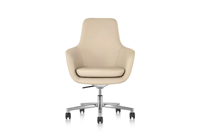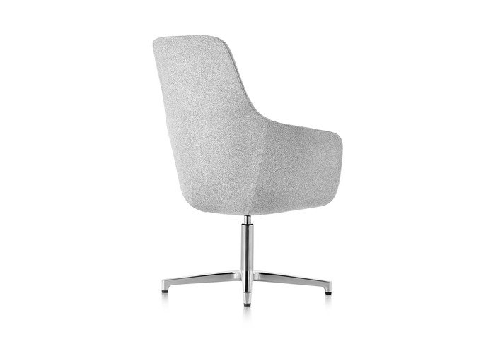 Saiba ist mit mittelhoher oder hoher Rückenlehne und als Lounge-Sessel in fester Höhe mit 4-Stern-Fuß und Bodengleitern oder als höhenverstellbarer Bürostuhl mit 5-Stern-Fuß und Laufrollen erhältlich. Perfekte Verarbeitung, eine umfangreiche Palette an Textilien und ein polierter oder schwarzer Fuß unterstreichen seine zeitlose Eleganz.