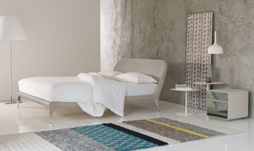 In der Geschichte des modernen Bettes kam im Jahr 1978 eine entscheidende Wende: in diesem Jahr wurde Flou mit dem konkreten Ziel gegründet, das Schlafzimmer zu revolutionieren und eine neue “Schlafkultur” ins Leben zu rufen. Es ist die Zeit der großen Veränderungen: die Frauen entdecken für sich die Welt der Arbeit, Häuser und Wohnungen benötigen multifunktionelle Räume, es entsteht der Wunsch nach einem freieren und besseren Leben. Das Schlafzimmer wird zu einem dynamischen Ort, das Bett schüttelt das traditionelle „immer weiße“ Image ab und nimmt Farbe an. Flou ist seiner Zeit voraus und stellt Nathalie vor, ein Bett, das vom genialen Geist Vico Magistretti’s geboren wurde. Zum innovativen Design und der Möglichkeit es „schlaffertig“ erwerben zu können kommt bei Nathalie noch eine weitere große Zweckmäßigkeit hinzu: eine kleine Geste und es ist wie neu. Der Erfolg ist so groß, dass Nathalie zum Stammvater der „modernen Textilbetten“ wird, die zu einem präzisen Möbelzweig werden: weich, gepolstert, abziehbar und waschbar, wo schöne bunte Bettbezüge Überschlaglaken und Decken ersetzen.
