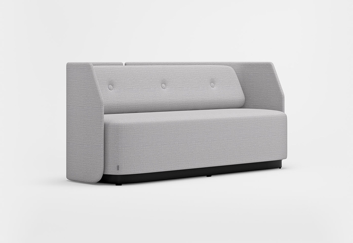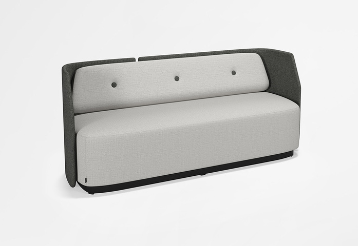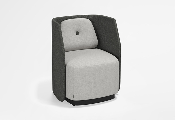 Freistehender Sessel und Sofa mit niedriger Rückenlehne, die sich mühelos zu verschiedenen Sitzkonfigurationen kombinieren lassen. Die Form des Rückenpolsters bietet gute Unterstützung für den unteren Rückenbereich. Das Rückenpolster ist standardmäßig im Lieferumfang enthalten, kann auf Wunsch aber gegen ein Kissen ausgetauscht werden (Rückenpolster und Kissen sind mit oder ohne Knopf erhältlich). Aus dem Kinnarps Colour Studio können Sie die Stoffe für Rückenlehne, Sitzfläche, Rückenpolster und Kissen wählen. Sockel und Fuß mit Drehfunktion bestehen aus schwarzem Holz. Die 2- und 3-Sitzer können auf Wunsch mit einer Steckdose im Sockel ausgestattet werden.