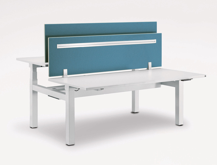 Insbesondere für größere Projekte bieten wir Ihnen diese multifunktionalen Tische in vielen Varianten an. Der einheitliche Look Ihrer Offices ist also mit eingeplant. Das T-Fuß-Gestell bietet vier verschiedene Höheneinstellvarianten. Der Einzeltisch lässt sich leicht zur Bench für Teamarbeitsplätze verketten und ist somit flexibel einsetzbar, um neuen Anforderungen in sich wandelnden Bürolandschaften gerecht zu werden. Die durchdachte Konstruktion ohne zusätzliche Traverse bietet viel Beinfreiheit. Für eine gesunde Arbeitseinstellung lassen sich die Tische bequem in der Höhe verstellen, so dass nach Wunsch im Stehen oder im Sitzen gearbeitet werden kann.