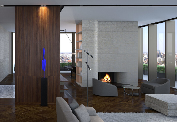 Die Standleuchte kreon esprit floor gleicht in Design, Funktionsweise und Benutzerfreundlichkeit der Pendelleuchte, bietet aber darüber hinaus die Flexibilität der Bodenmontage. Der Sockel ist in weißem Carrara-Marmor oder natürlichem Rohstahl (Stahlblau) erhältlich.