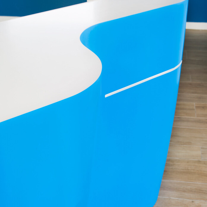 KRION® wird ähnlich wie Holz verarbeitet − der Acrylwerkstoff lässt sich beliebig schneiden und verbinden. Darüber hinausist es mittels Heißverformung möglich, gebogene Elemente zu formen. Keine Design-Wünsche bleiben offen: Via Injektionsverfahrenlassen sich Designs und Projekte umsetzen, die mit anderen Materialien so nicht möglich wären. Durch diese Eigenschaften können wir optisch fugenlose Oberflächen herstellen – sie absorbieren keine Flüssigkeiten und sind leicht zu reinigen und zu pflegen.