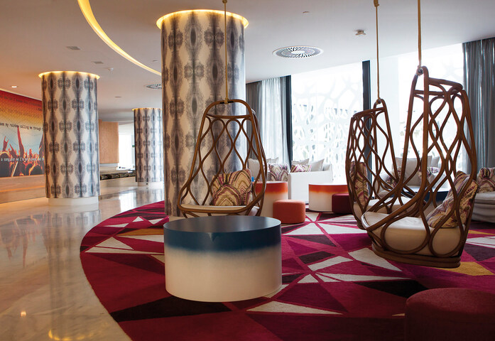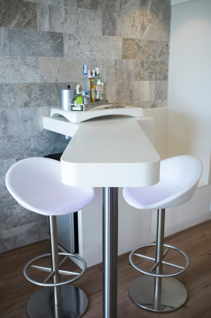 For the furniture in 293 of the rooms, KRION®, the solid surface by PORCELANOSA Group, has been used, being central to the decoration of the club area.