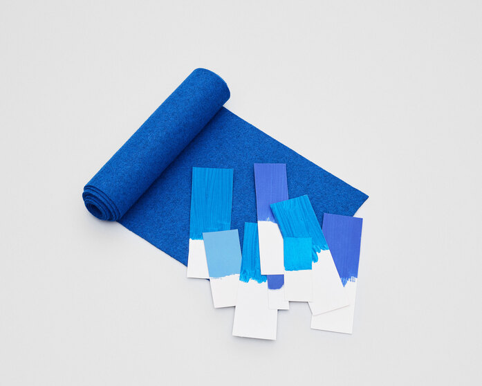 Die Farbpalette des Textils entsteht durch Stückfärbung einer dunkel- oder hellgrauen Mélange und spiegelt die reine Ästhetik von Finn Sködt wider. Die neue Farbskala kombiniert charakteristische Nuancen wie Knallrosa, Waldgrün und Finn Sködts Lieblingsfarbe Ultramarin mit kreidigen Noten und neutralen Tönen. Diese wurden sorgfältig aus der umfassenden Farbbibliothek handgemalter Muster des Designers ausgewählt, in der die Farben dokumentiert werden, die er jahrzehntelang in seinen Gemälden verwendet hat.
