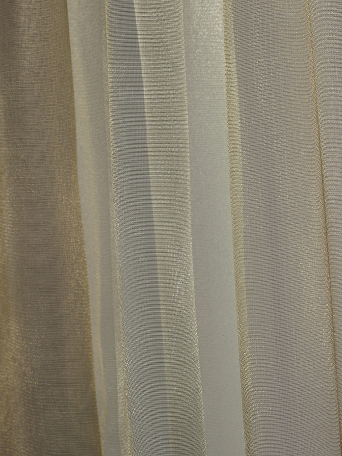 Die einzelnen Farbstellungen bestehen jeweils aus drei Tönen, aus denen sich – je nach Lichteinfall – tiefe, schimmernde Nuancen ergeben. Dieser faszinierende Effekt kommt insbesondere dann zur Geltung, wenn der Stoff gerafft wird. Bei gerader Hängung im Fenster ist das Material nahezu völlig transparent.