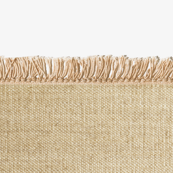 Vintage is a unicoloured kelim made from fine yarn with a versatile, vivid colour palette. As these yarns are hand spun, the rug has an intriguing, slightly irregular surface. Vintage’s nuanced colour gradations, which have an abrash character, are created by combining subtly coloured yarns and a special washing technique. Available with same coloured, cross coloured and naturally coloured fringes, as well as without fringes, Vintage is a particularly hard wearing rug. It gains its strength from the kelim technique.