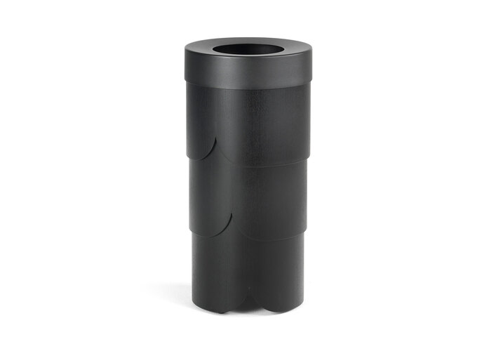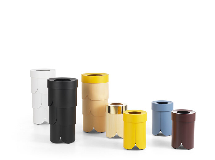 In addition to the existing waste paper bins in powder coated steel sheet, they are now launched in ash veneer togive a slightly softer and more organic expression. That Norwegian designer Tuva Rivedal Tjugen has found her inspiration from nature is reflected in the pine coneshaped design and the overlapping layers resembling tree bark.