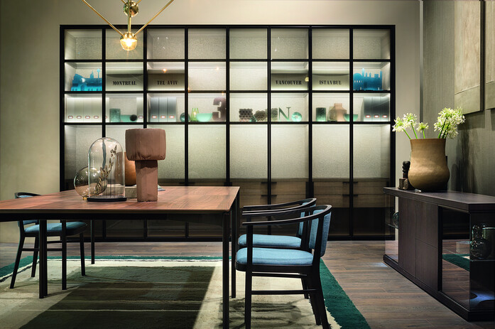 Among the novelties, the essential style of Piero Lissoni, art director of the brand, who conceived LUCE. Starting from the classic iconography of the table, Lissoni worked on the exasperation of its features by subtraction: top in Canaletto Walnut and structure in bronzed die-cast aluminium merge with the intense lightness of the design given by the essential volumes and thicknesses. A new table, available in different sizes, all fixed and square, of modern, almost technological style, thought to furnish refined home environments and also sophisticated contract spaces.