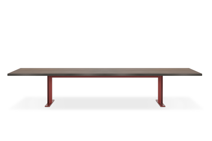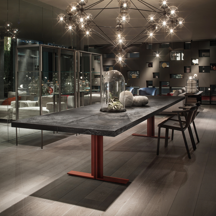 Love for detail and search of quality define the discreet vision of the design made in Lema. This is the way Piero Lissoni designed the new Memo table.Thought to furnish a large dining area or refined meeting room, Memo stands out for its absolute purity. It is characterised by the minimalist discretion that defines Lissoni’s style and by its large sizes, 400x110 cm. Away from an ostentatious design frenzy, it is appealing for the balance and symmetry of the elements: the top in heat-treated oak or Lava stone and the metal structure, proposed in brushed aluminium in Titanium colour or lacquered Borgogna red. The aesthetic research was in fact focused on materials and their expressive ability that overcomes any form of artifice. At the basis, there is a constant research activity that approaches living trends to anticipate and exceed the expectations of the clientele, which is becoming more and more international, proposing collections that excite for their personal character, always in line with the brand’s quintessence. Thus Lema enriches its home archetype. A precise living idea, pervaded by a refined understatement, dedicated to lovers of an informal lifestyle: this is Lema home, refuge of the soul, space thought like a tailor-made dress free of constraints, inspired to a lifestyle away from clamour and pretentiousness, devoted to utmost emotional comfort. A soft allure traces the boundaries where luxury always remains in the background, while a relaxed atmosphere stands out, charming for its impeccable quality and gracefulness of the single pieces. Creations thought to live in harmony, but able to freely and naturally adapt to every home, worldwide.