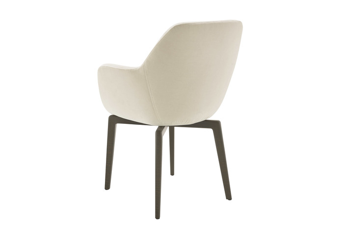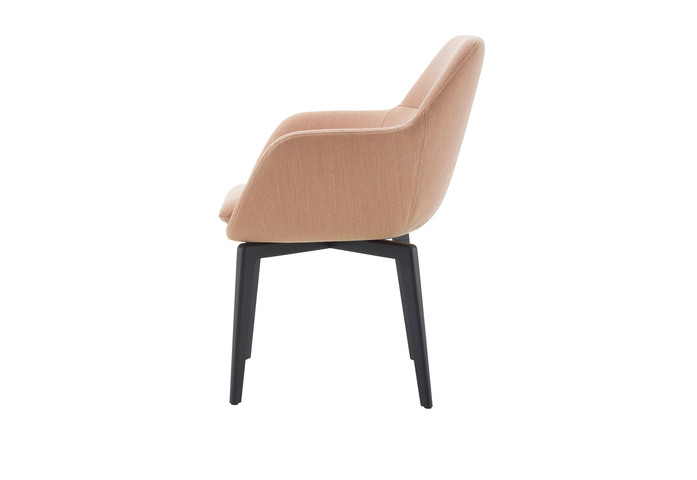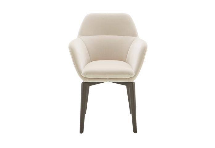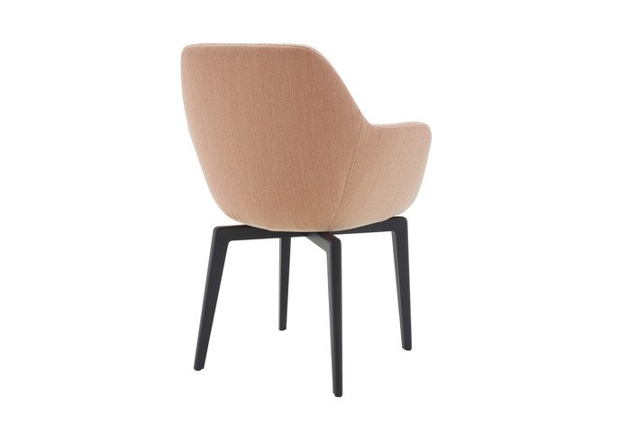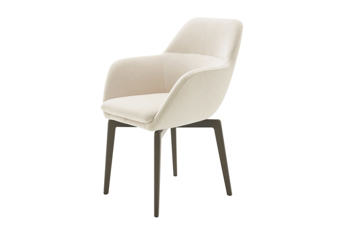 „Ein Keilkissen umfasst die Sitzfläche und schmiegt sich behaglich an den Rücken; das ist das schlichte Ansinnen dieses Bridge-Stuhls, der den Tisch, an dem er steht, zur Geltung zu bringen will. Verschiedene Fußgestelle sind verfügbar. Er kann mit vielen Bezugsstoen von Ligne Roset bezogen werden." Marie Christine Dorner.