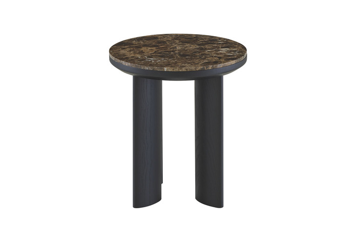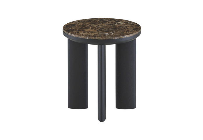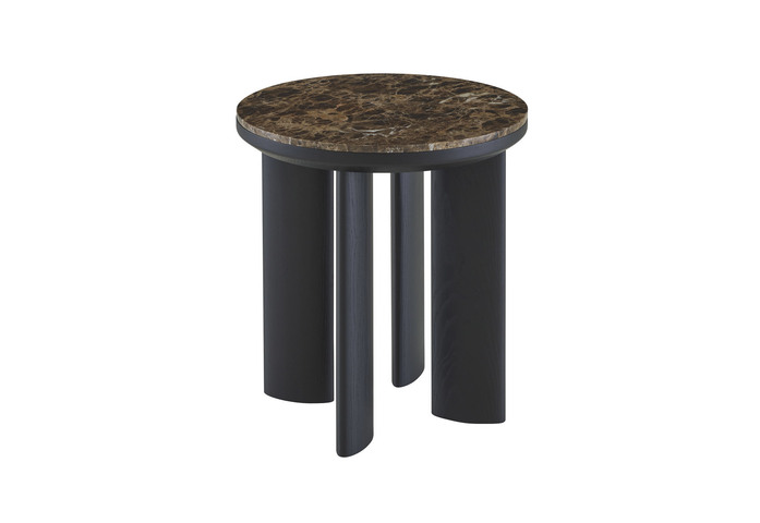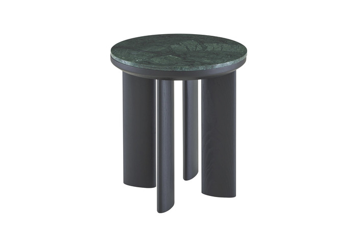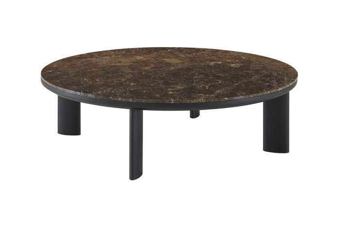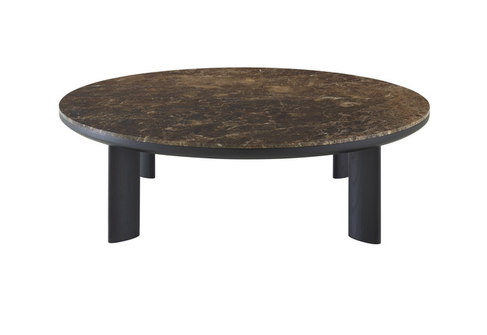 Wie eine Hommage an ein Viadukt, diesem Kunstwerk, das über einen Fluss, einen Meeresarm oder irgendein anderes Hindernis führt und dessen Höhe oder Breite oder gar beides, größer sind, als es für diesen Zweck notwendig wäre. Alain Gilles hat einen Couch- und einen Beistelltisch gezeichnet mit einer Platte aus Marmor, corsé oder verde, die in einen Rahmen eingelassen ist, mit Fußgestell aus Esche massiv, schwarz gebeizt.