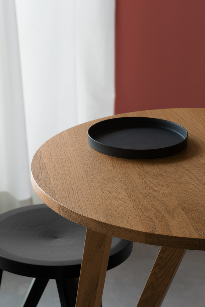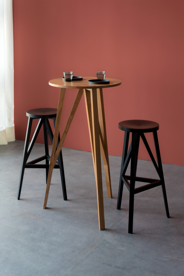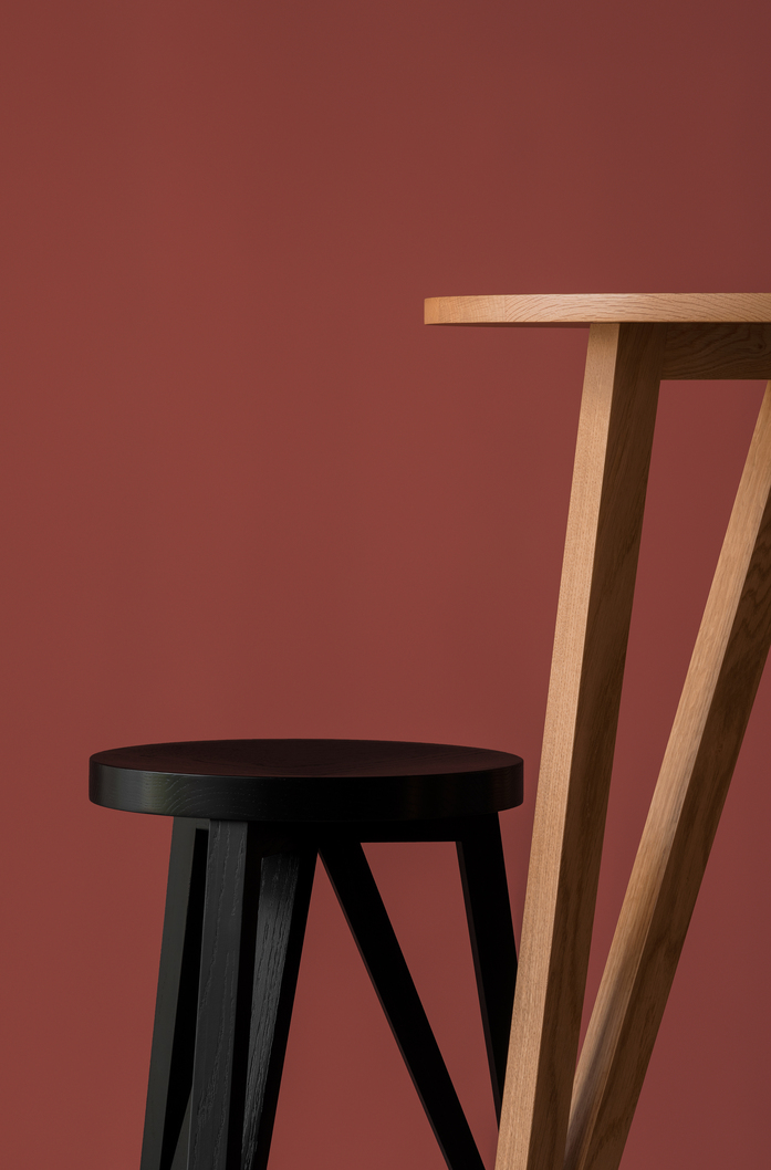 Der Kern der Fachwerkarchitektur Nordeuropas ist das hölzerne Tragwerk. FABER ist eine Interpretation dieses Elements in einem neuen Format. Das Ergebnis ist eine Produktfamilie mit einer unverkennbaren Silhouette. FABER Produkte sind aus massivem Eichenholz gefertigt und eignen sich für den Einsatz im Wohn- und Objektbereich. Sie lassen sich mühelos miteinander kombinieren und umfassen einen Hocker, Barhocker, Bank, Cafétisch, Stehtisch und einen Beistelltisch.