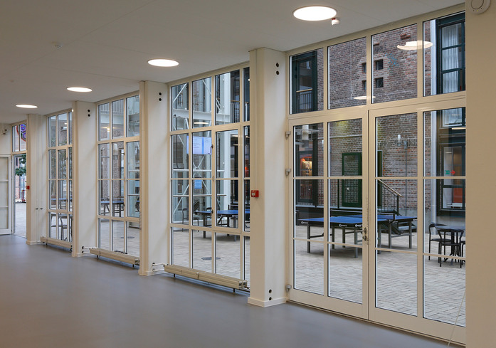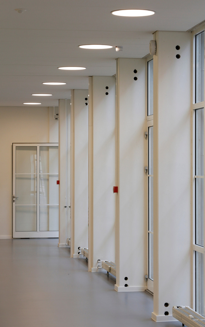 Die Leuchte strahlt diffuses Licht über einen hocheffizienten Acryldiffusor aus. Der Diffusor, der von einem voluminösen farbigen oder weißen Ring umschlossen liegt, ist verborgen, wenn man ihn aus niedrigen Winkeln betrachtet. Eine Anwinkelung der Ringinnenseite von 5º erzeugt eine angenehme und dekorative Abstufung des Lichts vom Diffusor. Mit zwei Durchmessern und vier verschiedenen Montagemöglichkeiten lässt sich die Leuchtenserie für vielfältige Anwendungsbereiche einsetzen.