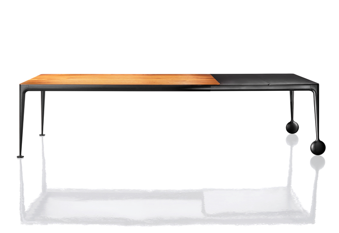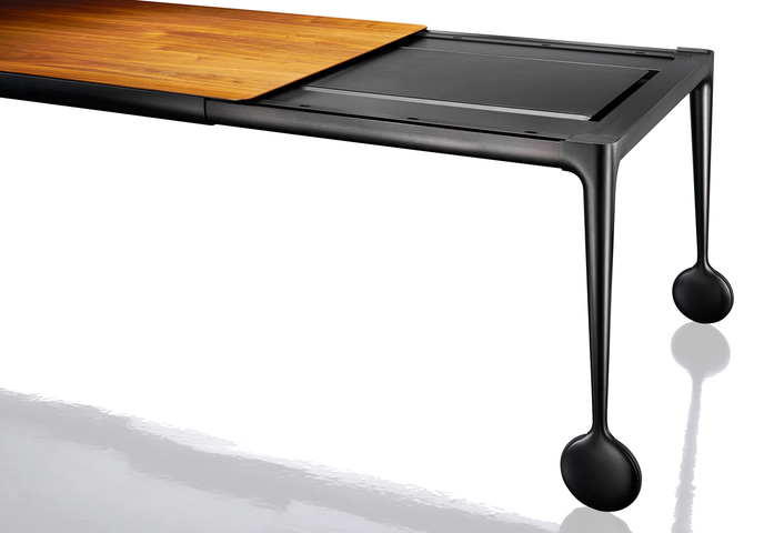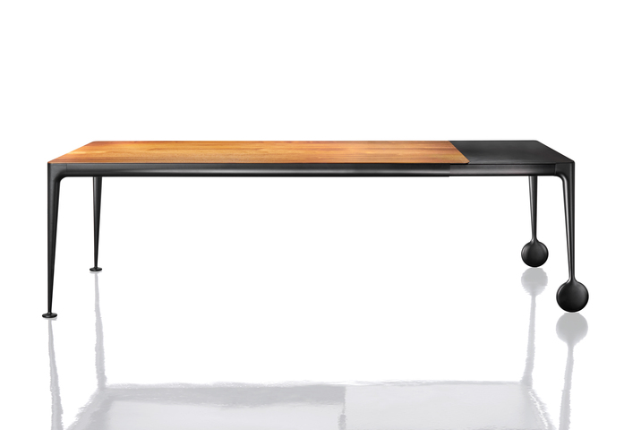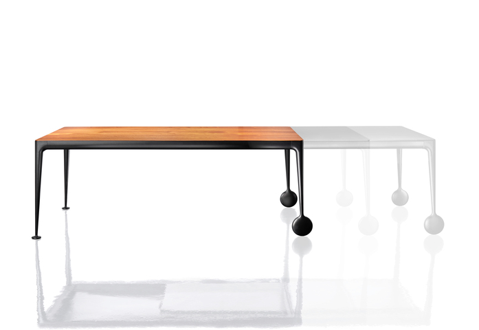 Tische/Ausziehbarer Tisch Material: Beine aus Druckguss-Aluminium, poliert oder lackiert. Querstreben aus Aluminium, poliert oder lackiert. Tischplatten aus gehärtetem Glas (glänzend) oder geätzt (matt). Rollen und Füsse aus Kautschuk. Auszugsplatte aus lackiertem MDF Laminat (glänzend oder matt). Das Magis Logo ist auf alle Produkte unserer Kollektion geprägt und garantiert ihre Echtheit.