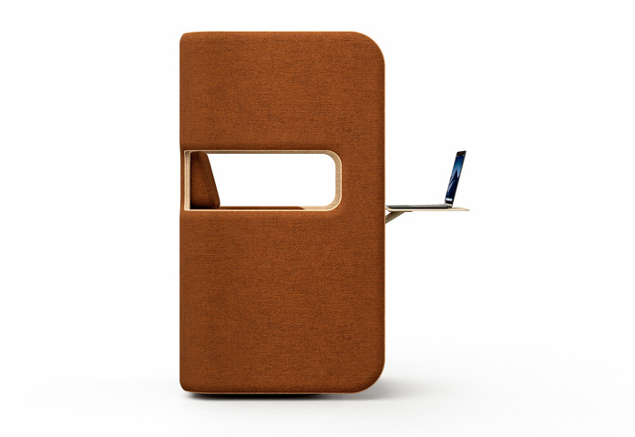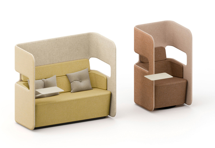 PodSeat offers a comfortable and private space for one person in various spaces of a modern activity based office. The chair can be used alone or in groups to provide small spaces for added privacy at meetings, or for peaceful working. Thanks to the swivel base, users can turn in any direction they want. The chair is also available with low backrest and a desktop for laptops is available as an accessory. The window openings in the PodSofa also function as armrests. Thanks to its compact size, the seat can be used even in small spaces and is easy to move to a new place. Various upholstery materials can be used to add character to the space. The Pod product family designed by the o4i Design Studio also includes several other products with coherent design.