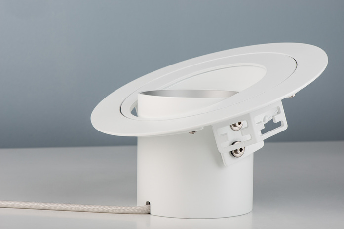 »seventies« – mawas Leuchtenfamilie mit Stromschienenstrahler, Aufbau-, Einbau- und Pendelleuchten. Der Richtstrahler zum Einbau in Trockenbaudecken basiert auf bewährter Technik und ergänzt die »seventies« Strahlerfamilie. Durch die reduzierte Gestaltung und den deckenbündigen Einbau entsteht ein ruhiges Deckenbild und der Strahler fügt sich dezent in die Raumsituation ein. Die sehr gut entblendete Lichtquelle in Verbindung mit den optimierten Hochleistungsreflektoren erzeugen ein sehr gutes Beleuchtungsergebnis mit erstklassigem Sehkomfort.
