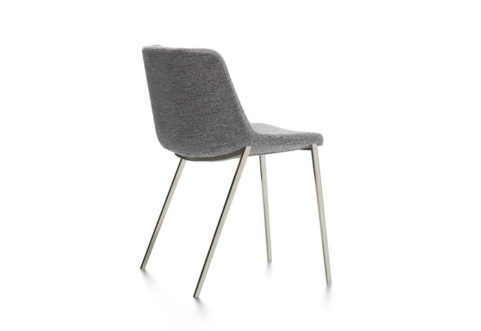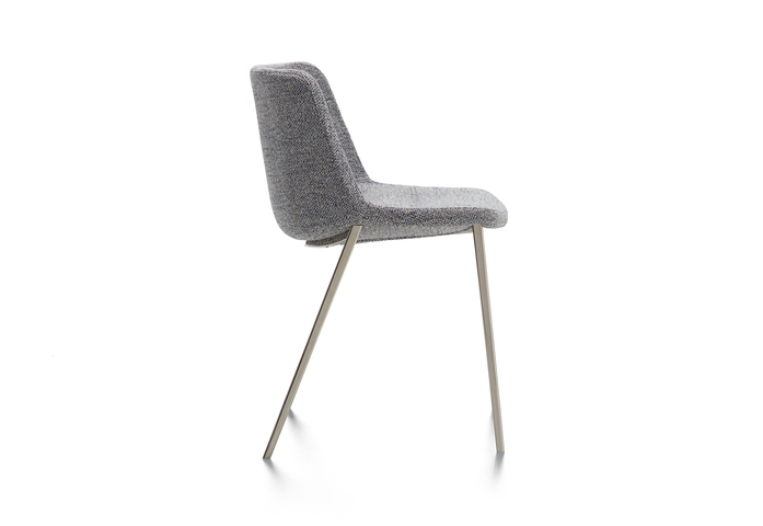 The Aïku Comfort has a load-bearing body made of metal tubing covered in polyurethanefoam rubber. Parts covered in polyester wadding. The padded small armchairs are covered in fabric or leather. The upholstery is notremovable and completely covers the armchair. The small armchair is available only with four tapered legs in a glossy galvanic finish, inblack nickel, chrome nickel, gold and pink gold.