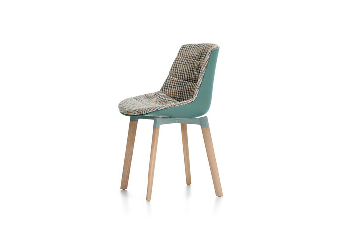 POLSTERVERSION Die Sessel Flow Color können mit einer Polsterung ergänzt werden: dank einer thermogeformten und gepolsterten Gegenschale mit Watte aus Polyurethan und Polyesterwatte (untersteppt).