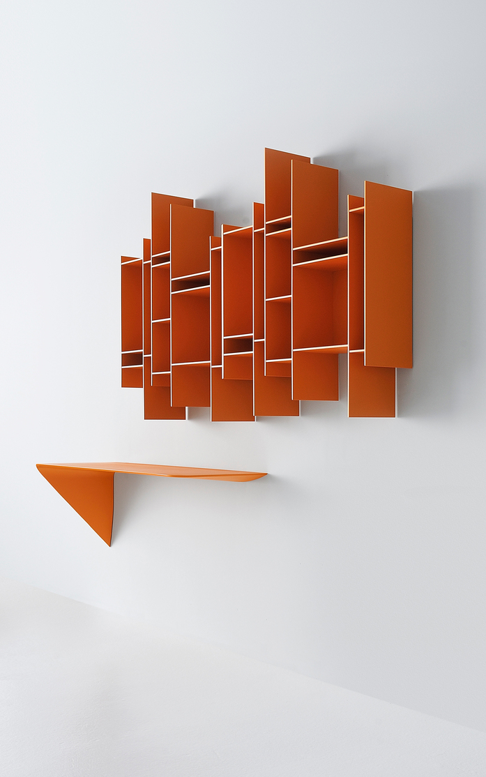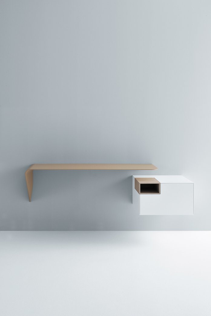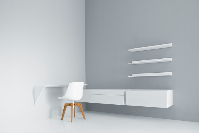 Ablage / Hängeschreibtisch. Die geschwungene Form und die verjüngte Dicke verleihen dem Produkt in Design und Optik eine starke ästhetische Ausdruckkraft.