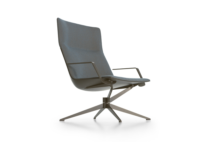 A load-bearing shell in rigid polyurethane (compact, high performance techno-polymerobtained through moulding) and liquid painted in the colours matt white, bronze and blacknickel. The colour of the shell matches with the one of the frame. Counter-shell in rigidpolyurethane covered with polyurethane foam rubber with upholstery in polyester wadding.Available in high-back and low-back version, with or without armrests.