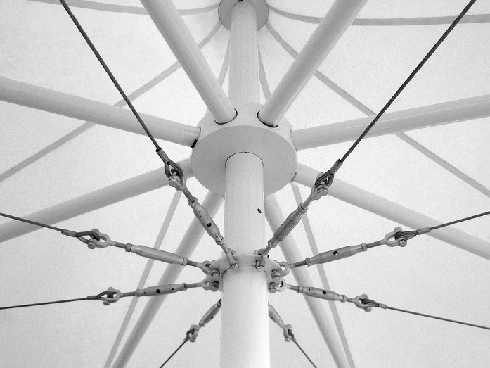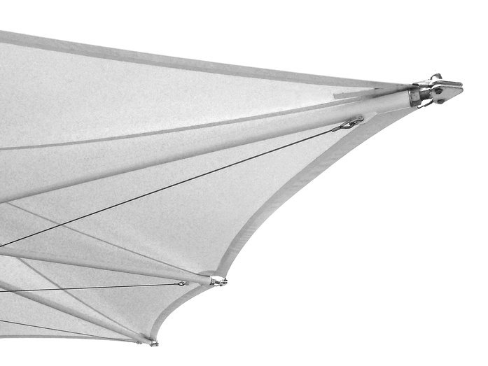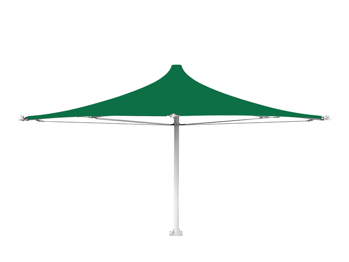 Neues Produktdesign wird durch neue Materialverarbeitungstechnik entwickelt: Außergewöhnliche Inversion erreicht der Shade Structures durch die MDT-eigene Schweißklebetechnik, die den PVC-Bezug fixiert und maximale Robustheit gewährleistet. Der Schirm ist für den dauerhaften Einsatz konzipiert, der eine Demontage ermöglicht, aber das Schließen der Konstruktion nicht, wie es bei den anderen Schirmmodellen möglich ist. Die außergewöhnliche Form des Schirms verleiht jeder Location eine besondere Note.