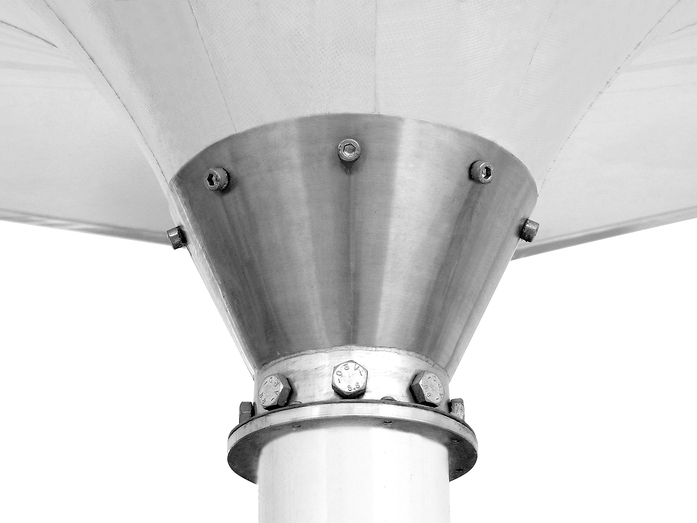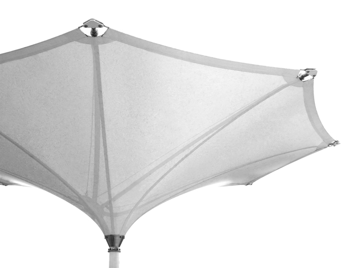 Neues Produktdesign wird durch neue Materialverarbeitungstechnik entwickelt: Außergewöhnliche Inversion erreicht der Shade Structures durch die MDT-eigene Schweißklebetechnik, die den PVC-Bezug fixiert und maximale Robustheit gewährleistet. Der Schirm ist für den dauerhaften Einsatz konzipiert, der eine Demontage ermöglicht, aber das Schließen der Konstruktion nicht, wie es bei den anderen Schirmmodellen möglich ist. Die außergewöhnliche Form des Schirms verleiht jeder Location eine besondere Note.