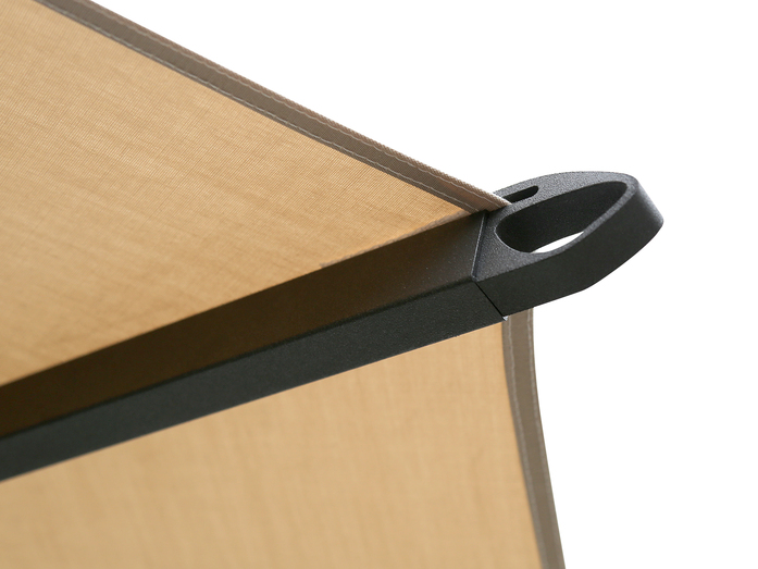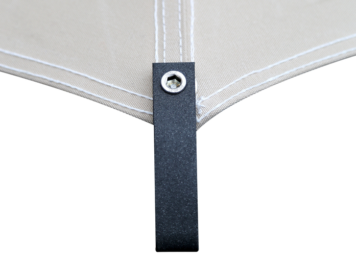 rostenden Schrauben an der Aluminiumendkappe befestigt. Auswechselbar, farbecht, licht-, wasser- und witterungsbeständig, reiß- und scheuerfest, beständig gegen Umwelteinflüsse.