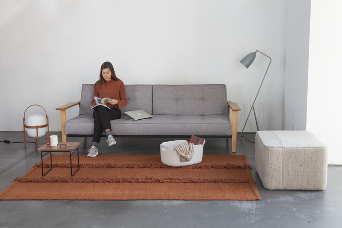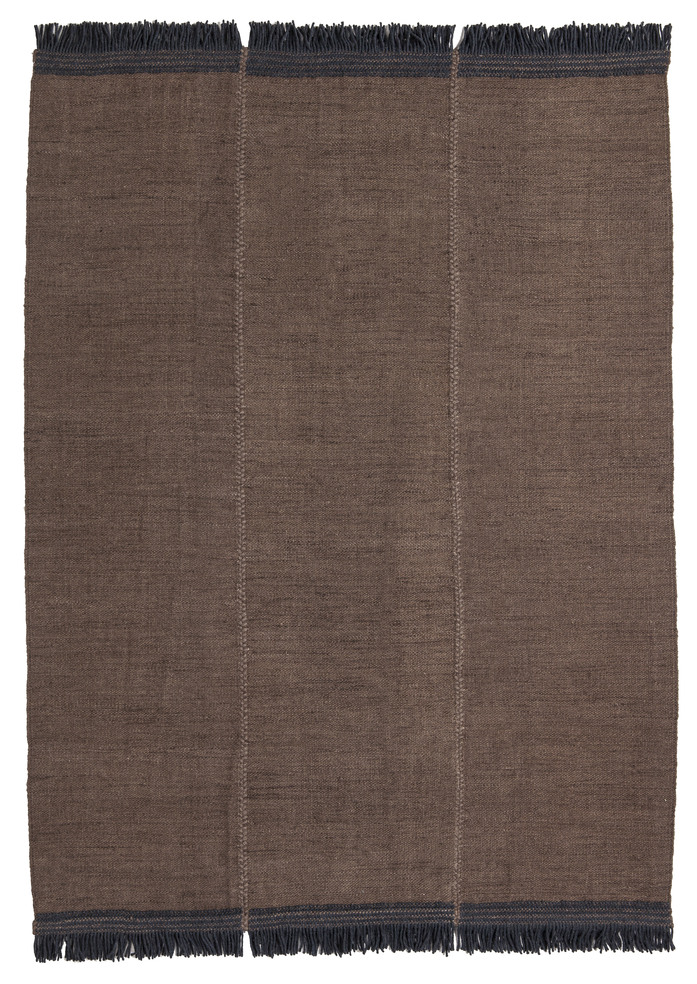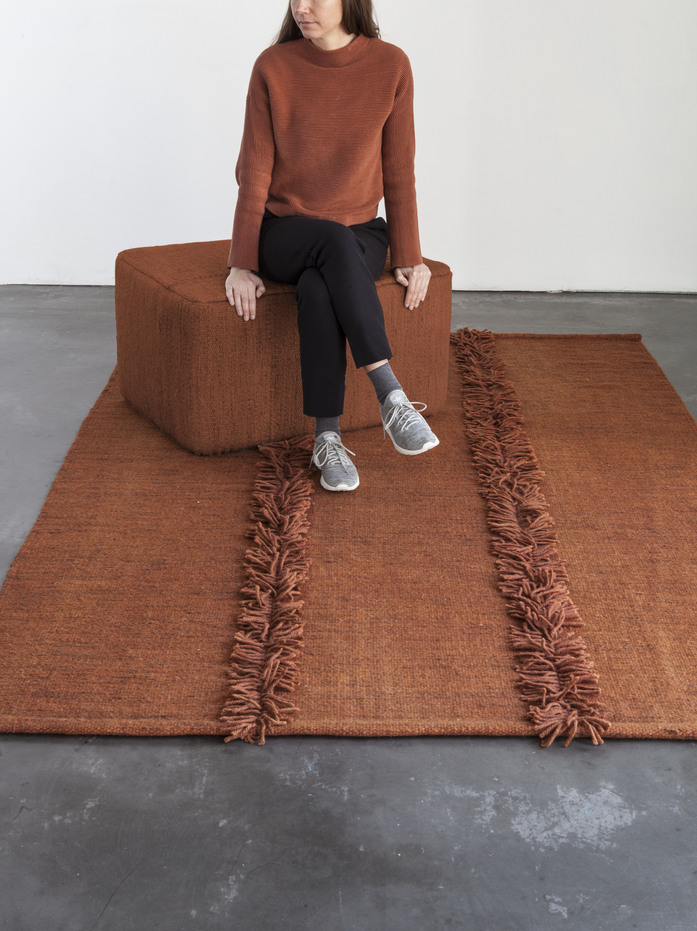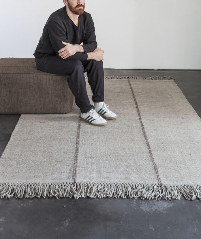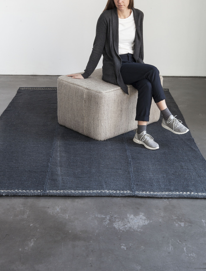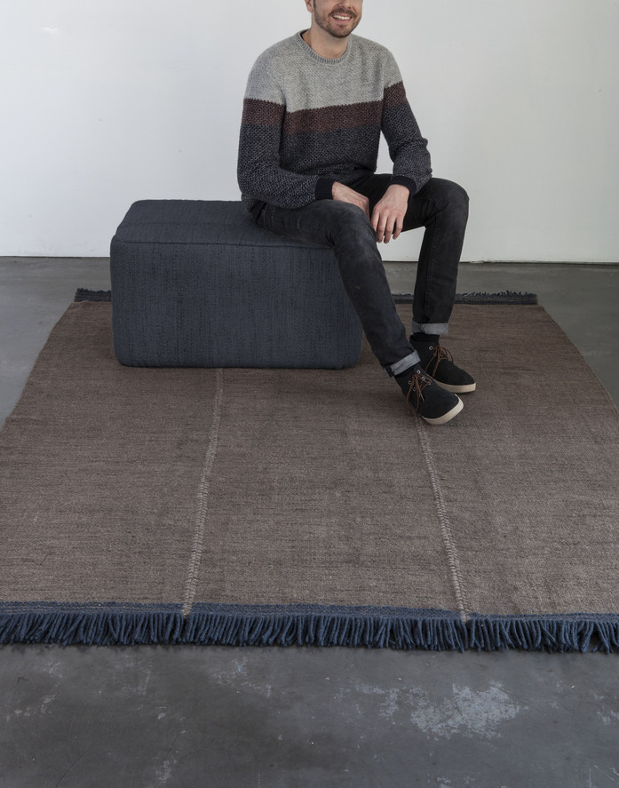 An artisanal flat-weave made in India, the Mía rug is a Dhurrie created by joining three pieces, individually dyed, to obtain a worn, lived-in effect. Thanks to the simple online configurator, the collection can be customised to suit each customer, choosing between two sizes, four colours, and four different finishes. The customer can contrast seams, add different types of fringes or opt for colourful stitches. Infinite results are possible; each detail makes a difference, ensuring each rug is unique.