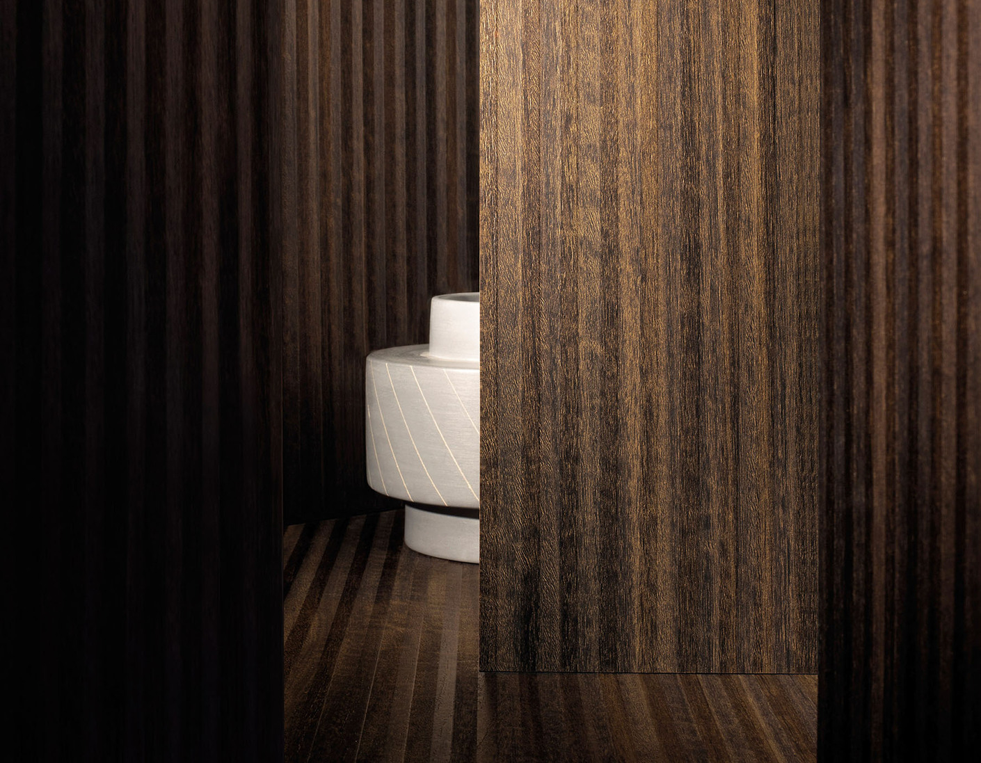 Dynamik in den Raum bringt Cleaf mit "Riga": Die Textur der hochwertigen Verkleidung, die als Paneel, Laminat und Kante erhältlich ist, bietet mit einem klaren Linienverlauf eine spannende Optik. Mit dem Wechsel aus dunklen Linien auf hellem Hintergrund und hellen Linien auf dunklem Hintergrund schafft "Riga" eine spannende Dreidimensionalität. Klassische Elemente mit einer zeitgenössischen Note: Für die Farbgebung kann aus einer Vielzahl an Möglichkeiten gewählt werden – wie monochrome Versionen, die über die Struktur in Verbindung mit der Einheitlichkeit der Farbe einen eigenen Charakter in den Raum bringen. Für die Produktentwicklung kann Cleaf auf einen hohen Erfahrungsschatz zurückgreifen: Das italienische Familienunternehmen ist seit 1975 auf beschichtete Platten, Schichtstoffe und Kanten für Möbel und Innenausbau spezialisiert. (am)