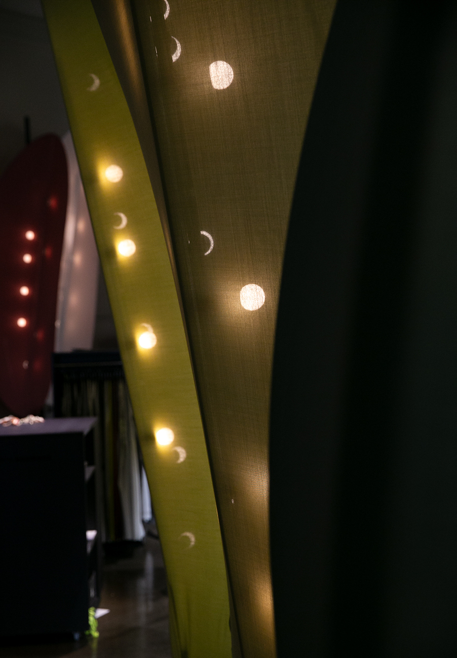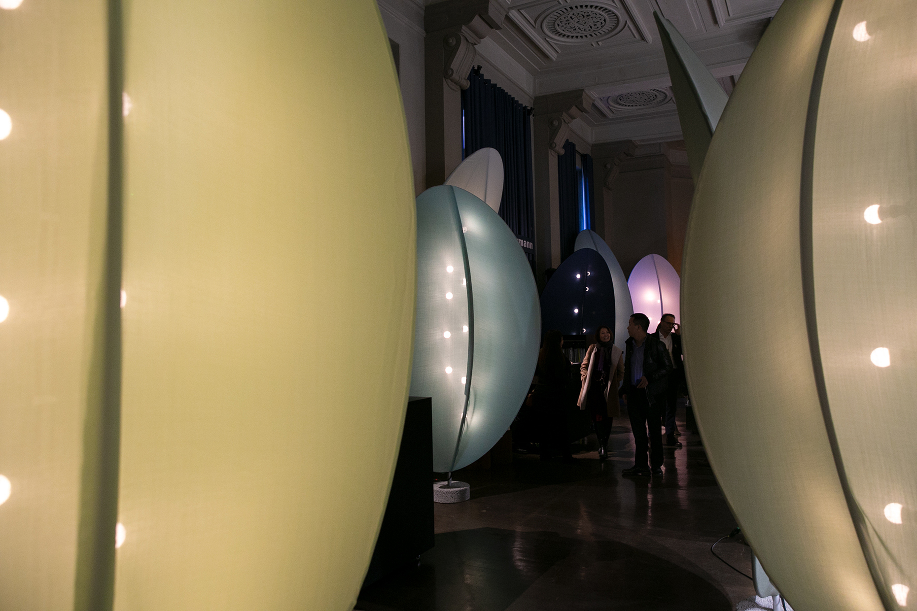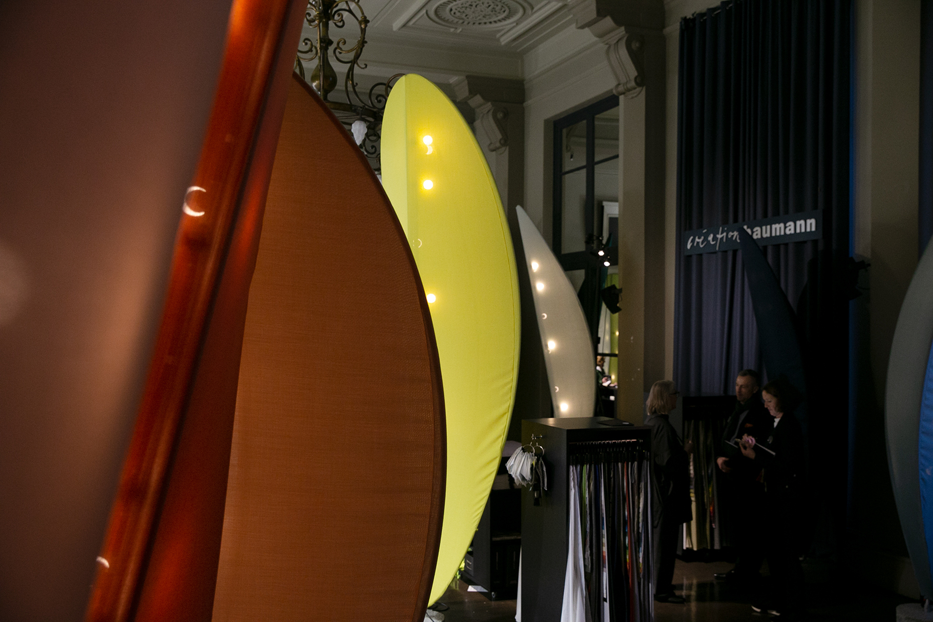 Das prachtvolle Hôtel de l'Industrie im 4. Arrondisment von Paris ist bereits seit dem 19. Jahrhundert ein Ort der Begegnung: Kulturelle Veranstaltungen gehören fest zur Tradition des Hauses. Aktuell und noch bis zum 20. Januar 2020 zeigt Création Baumann in Rahmen des internationalen Designevents Paris Déco Off in einem der stuckverzierten Säle des Hôtel de l'Industrie eine Installation des Designers Christoph Goechnahts. Dieser entwickelte abstrakte Bauelemente, die bezogen mit dem neuen Stoff "Solio" von Création Baumann den Besucher in einen Märchenwald entführen. "Ich möchte eine sinnliche Erfahrung schaffen, in der die Gäste sich ein wenig treiben lassen können", so Goechnahts. Farblich bietet die Installation, die den Titel "The Recreational Nature of Colour" trägt, bereits einen schönen Einblick in die Vielfalt des Textils, dessen pointierte Leinen-Optik in einer umfangreichen Farbpalette wählbar ist. Dank der blendfreien Beleuchtung, die Christoph Goechnahts in das Gerüst integriert hat, kommt das Spektrum von Lila und Rot über Gelb und Grüntönen besonders schön zur Geltung. Angelehnt an die Inspiration des Waldes verändert sich zudem die Lichtstimmung über den Tag, wird mal dunkler und mal heller. "Die punktuellen Lichtpunkte erinnern an kleine Glühwürmchen und unterstreichen so die Atmosphäre der Installation", so der Designer. Abstrakte Klänge untermalen die sinnliche Erfahrung im Raum zusätzlich.