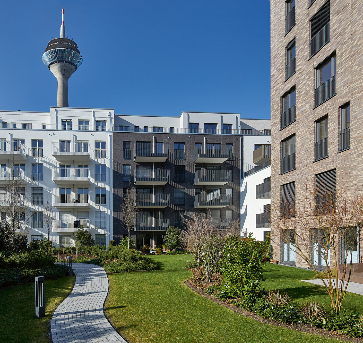 Eine zentrale Lage, die dennoch ruhiges Wohnen bietet: Der neue Wohngebäudekomplex "NeMo" in Düsseldorf verbindet diese Anforderungen ideal miteinander. Die Instone Real Estate Development GmbH hat zwischen Neusser Straße und Moselstraße ein Wohnquartier entwickelt, das sich durch die Nähe zum Rhein, zum Bürgerpark wie zu der beliebten Einkaufsstraße "Kö" auszeichnet und dennoch so geschützt liegt, das in puncto entspanntes Wohnen keine Abstriche gemacht werden müssen. Da das Architekturkonzept von Geitner Architekten die Schließung einer Baulücke vorsah, wechseln sich auf den Fassaden in Anlehnung an die Bestandsbauten der Nachbarschaft verklinkerte mit verputzten Flächen ab. Bodentiefe Fenster lassen indes viel Tageslicht in die großzügigen Eigentumswohnungen.