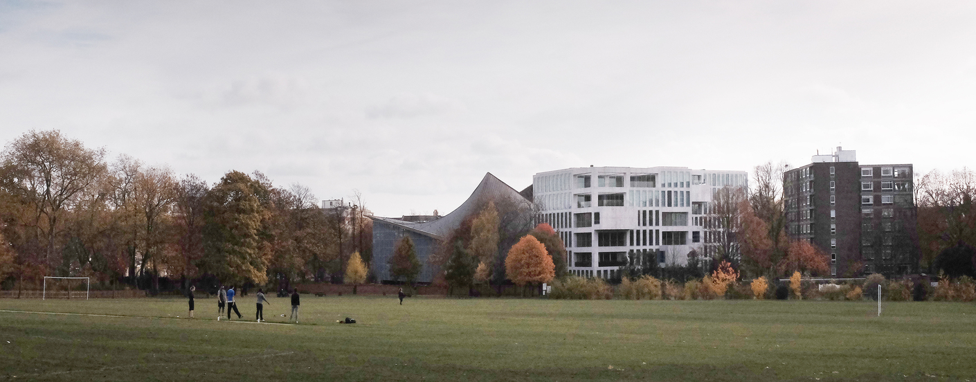 Um das Projekt zu finanzieren, mussten die Planer außerdem Zugeständnisse hinsichtlich der ursprünglichen Gartengestaltung machen. In einem typischen Londoner Immobiliendeal wurden die Kosten von 83 Millionen britischen Pfund für den Bau (sowie eine 175 Jahre währende Pacht zu einer äußerst geringen Miete) durch das Museum selbst aufgebracht, da das Projekt einen ‘Nutzen für die Öffentlichkeit’ darstellt, so dass der Bauträger aus dem Rest des Grundstücks einen maximalen Profit ziehen konnte. Daher wurde das Museum mit drei klobigen und mit weißem Stein verkleideten Kästen mit Luxuswohnungen umstellt, die auch von OMA entworfen wurden. Man muss sogar unter der Ecke eines der Blocks hindurchgehen, um zum Haupteingang des Museums zu gelangen. Der kleine öffentliche Platz vor dem Ensemble wurde durch eine von West 8 gestaltete Bepflanzung mit Sträuchern umzäunt, um so eine Abgrenzung zum privaten Bereich der Neureichen zu schaffen. Das ‘Zelt im Park’ steht insofern nun auf einem ziemlich überfüllten Zeltplatz.