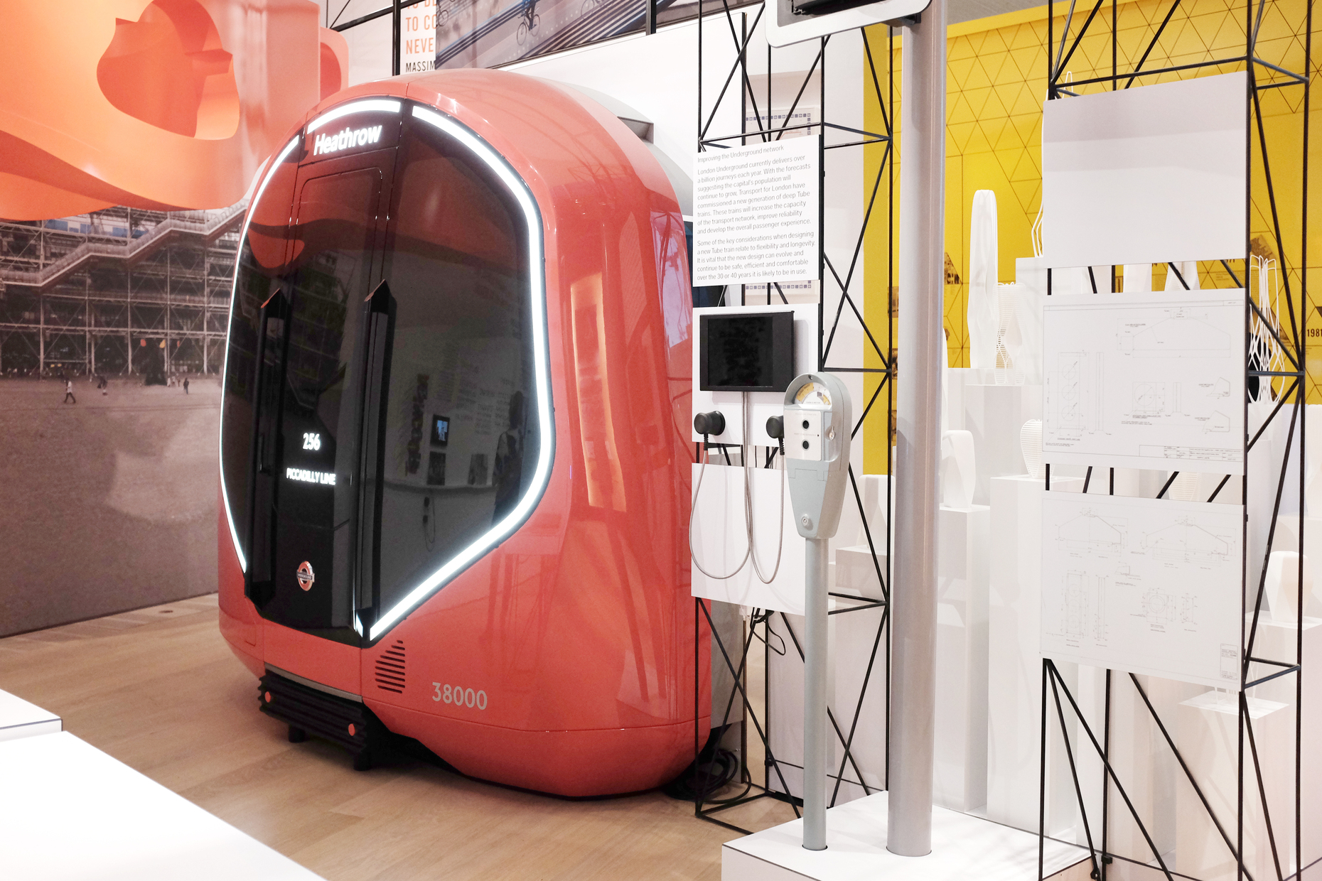 Erst mit dem Betreten des Obergeschosses findet sich ein Raum der auf zufriedenstellende Weise mit Objekten gefüllt ist und in dem die ständige Sammlung des Museums untergebracht ist. Zu sehen ist hier Großes (eine ‘Gerberette’, eines der Trägerelemente des Centre Pompidou in Paris in voller Größe, ein Prototyp eines neuen U-Bahn-Waggons im Maßstab 1:1 sowie ein riesiges Autobahnschild), die zu erwartenden Klassiker (Thonet-Stühle, Braun-Produkte von Dieter Rams sowie Margarethe Schütte-Lihotzkys Frankfurter Küche), Tödliches (ein AK47-Gewehr) und letztlich auch einst Abgründiges (mit den frühen Punkobjekten von Vivienne Westwood).