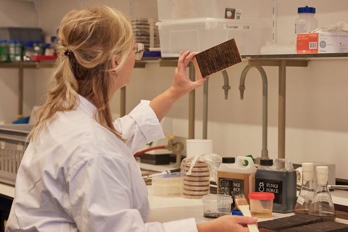 Teil des Secrid Talent Podiums ist die Präsentation des CO2-und klimaneutralen "Xyhlo Biofinish" von Frans van Rooijen & Michael Sailer: Eine umweltfreundliche Holzvergütungsmethode, die sich für den Außenbereich, wie dem Wohnungsbau, der hölzernen Fassadenverkleidung oder dem Gartenbau eignet. Das Holz wird im Zuge einer Ölbehandlung und dem Auftrag einer biologischen Pilzschicht geschützt, alle Rohstoffe werden aus natürlichen und lokalen Quellen gewonnen. Die biologische Schutzschicht kann kleine Beschädigungen selbst reparieren und ist wartungsarm. Das mit "Xyhlo Biofinish" behandelte Holz kann komplett in den natürlichen Kreislauf zurückgeführt werden.