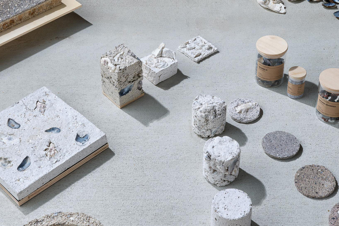 Die Materialforschung "Seacrete" von Lotte Wigman zeigt ein umweltfreundliches Baumaterial, das als Alternative zu Beton und Zement dienen soll. Austern und Muscheln bieten als Kalkquellen die Basis. Das Ergebnis ist ein Baustil, der Erosion und Sukzession als Gestaltungsprozesse begreift und den Anstieg des Meeresspiegels berücksichtigt. Die kreislauffähigen Lebensräume sollen helfen, das Gleichgewicht zwischen Mensch und Ökosystem wiederherzustellen.