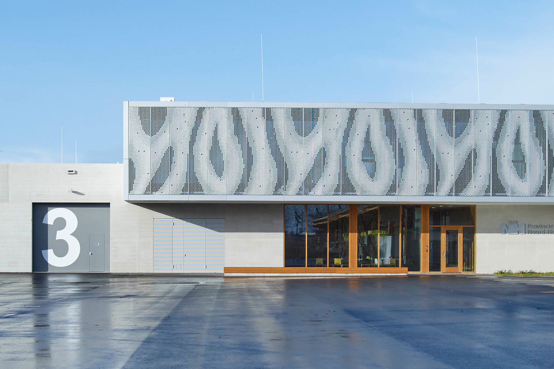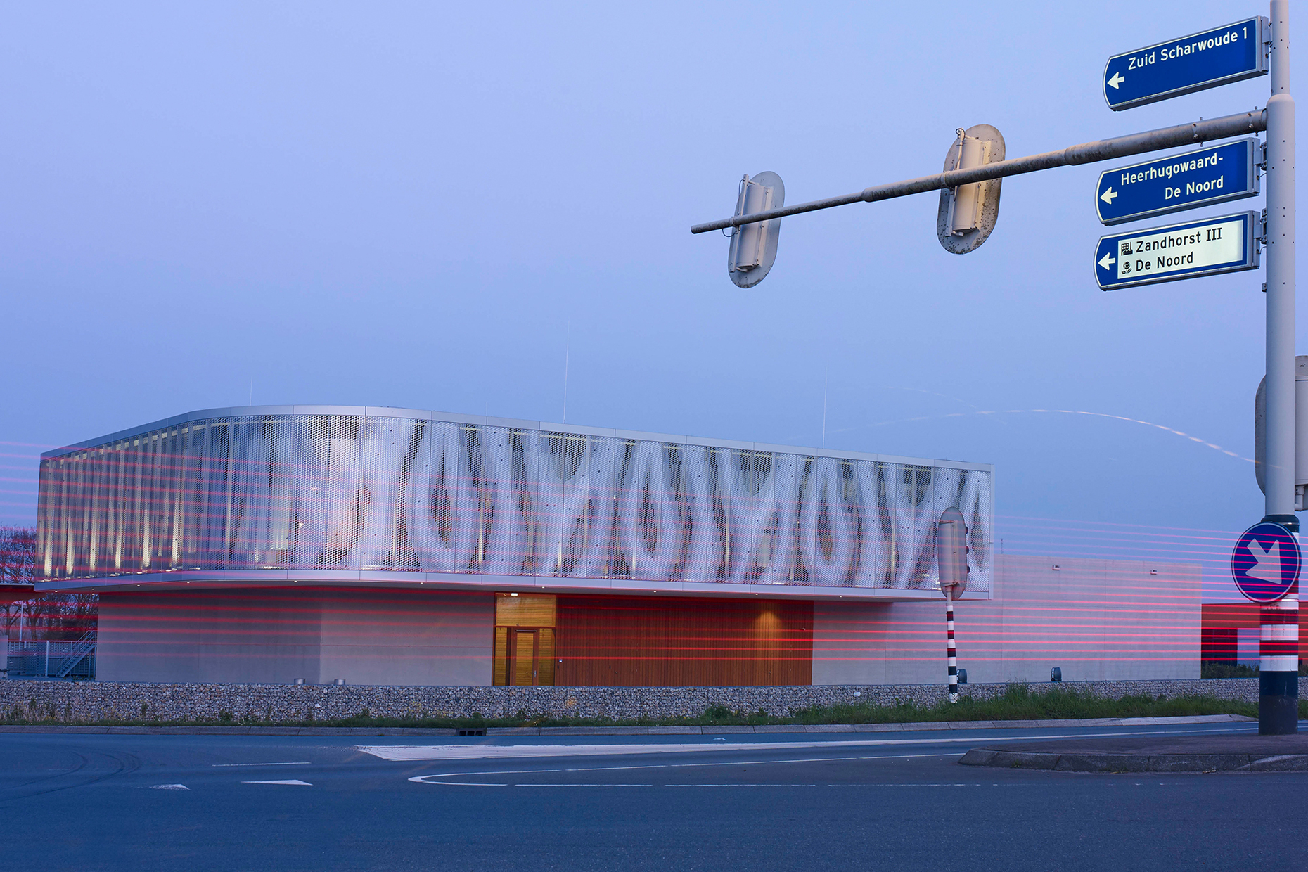 Wir befinden uns auf einer Schnellstraße etwas außerhalb von Heerhugowaard, einer mittelgroßen Gemeinde in Nordholland. In diesem flachen Nirgendwo besetzt ein ungewöhnliches Gebäude eine Kreuzung. Verbirgt sich hinter der gewellten Aluminiumfassade eine Werkstatt, eine Garage oder ein Büro? So speziell, wie der zweigeschossige Solitär aussieht, ist auch seine Nutzung: Aus dem neuen Kontrollzentrum werden die Brücken der Region überwacht. Auch die Instanthaltung der lokalen Straßen wird von hier aus organisiert und durchgeführt.