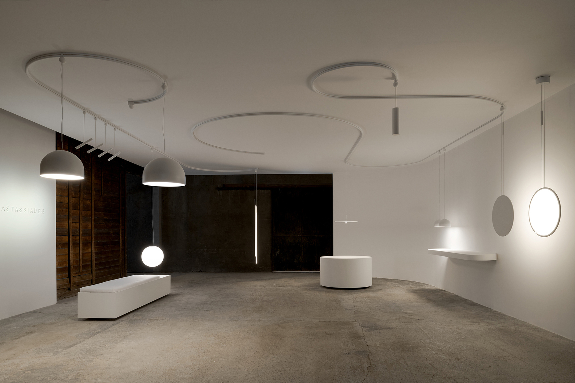 "Ich gehöre zu einer Generation, in der als Kind elektrische Slotcars sehr beliebt waren. Aber abgesehen von der Idee des Rennsports war ich mehr davon fasziniert, wie einfache Kombinationen von gebogenen und geradlinigen Streckenabschnitten Fantasiestrecken entstehen ließen. Mit einer ähnlichen Vorstellungskraft kann man diese Erfahrung einfach auf die gegenüberliegende Oberfläche der Decke übertragen", so Michael Anastassiades. Mit "My Circuit" hat er für Flos ein vielseitige Lichtschiene aus Gummi erdacht, die gebogen und gekrümmt werden kann. Die Kupferleiter für den Niederspannungsstrom sind dabei außen an den seitlichen Aussparungen angebracht, und dienen so als dekoratives wie funktionales Element. An den monochrom in weißer Farbe gestalteten Kreislauf können unterschiedliche Beleuchtungskörper mit direktem oder indirektem, mit punktuellem oder flächigem Licht angeschlossen werden – eine Freiheit, die es InnenarchitektInnen erlaubt, ein strahlendes Ensemble ganz nach ihrem Bedarf zusammenzustellen. (am)