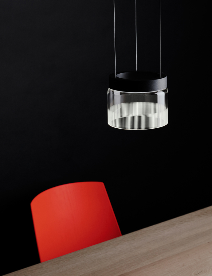 Begonnen hat alles mit einem Zufall – im Zuge der Entwicklung von “Guise”, einer zeitgemäßen LED-Leuchten Familie mit atmosphärischen Licht für den spanischen Leuchtenhersteller Vibia, schraubte Stefan Diez einen der Prototypen versuchsweise an die Decke. Was einst als Stehleuchte geplant war, erweitert nun die Kollektion horizontaler Pendelleuchten um eine vertikale Version, die bald deckenmontiert als auch an Seilen abgehängt, zum Einsatz kommen wird. Während "Guise" im ausgeschalteten Zustand dezent im Hintergrund bleibt, schließlich besteht sie überwiegend aus transparentem Glas, bietet sie eingeschaltet ein indirektes, blendfreies Licht, das ein angenehmes Ambiente schafft. Besonders stark wird dieser Effekt bei der Wandleuchte aus der Familie deutlich, die als kreisförmige Glasscheibe geradezu mit dem Hintergrund verschmilzt. Die Voraussetzung hierfür schafft ein besonders reines Glas ohne Grünstich, das sonst überwiegend im chemischen Labor Einsatz findet: Borosilikatglas.