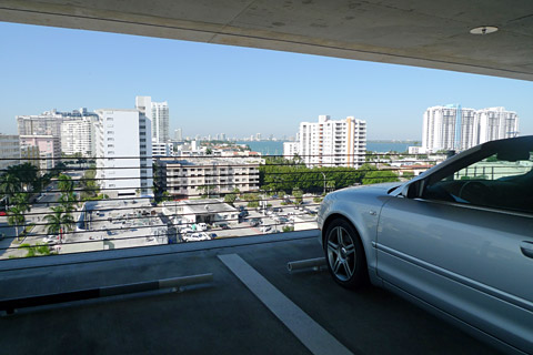Für Autos mit Weitblick: Aussicht aus dem Parkhaus 1111 Lincoln Road auf die Skyline von Miami, Foto © Thomas Edelmann
