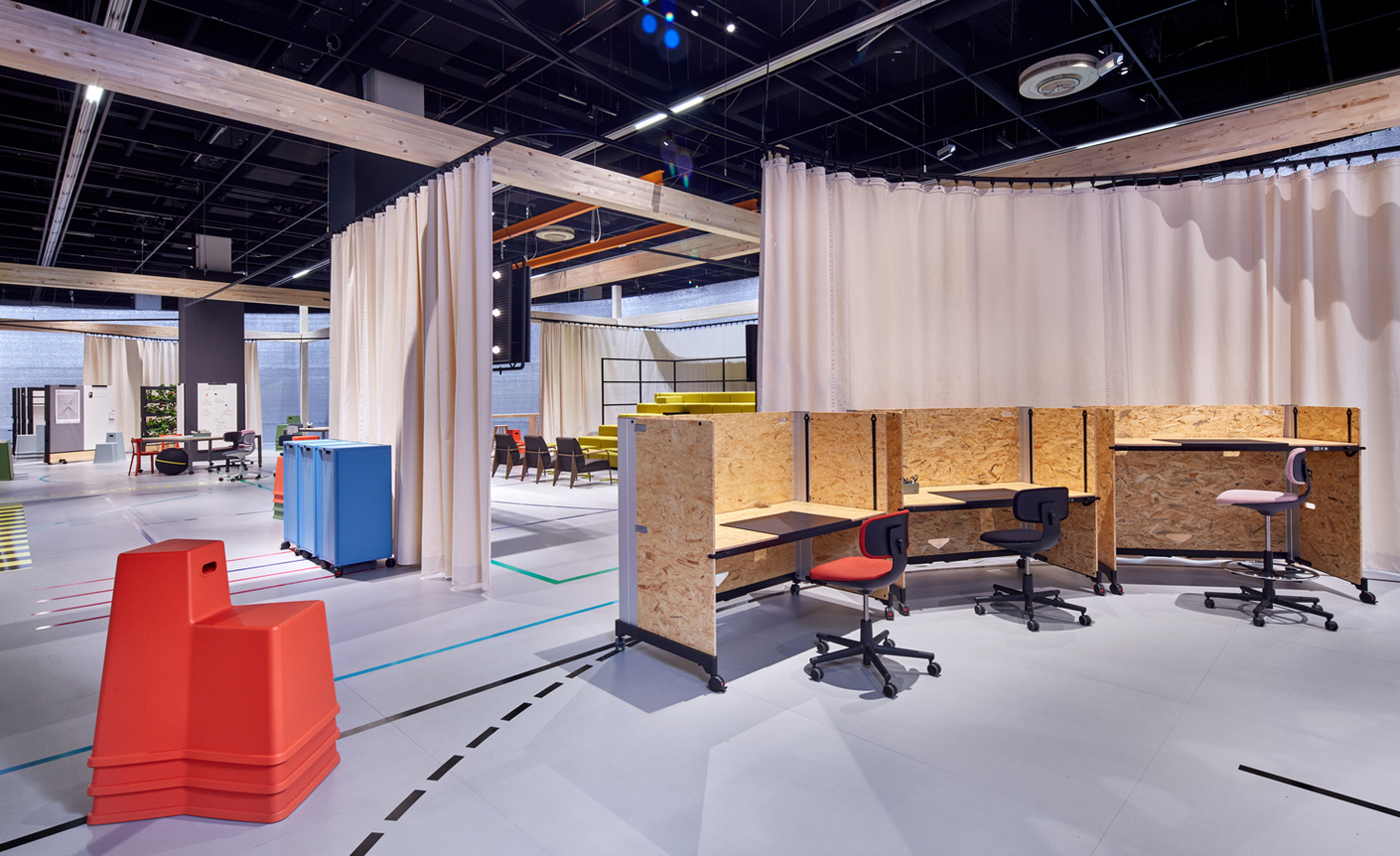 Das Standkonzept für Vitra auf der Orgatec hast du gemeinsam mit der Architektin Pernilla Ohrstedt entworfen. Die einzelnen Bereiche sind nur grob definiert und lassen viel Raum für Bewegung. Ist die Präsentation von Vitra als eine Art Mikrokosmos der heutigen Arbeitswelt gedacht?