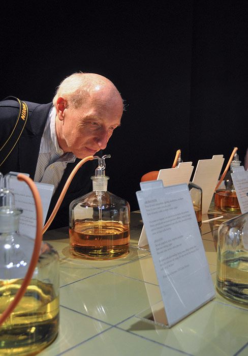 Fehlten bei diesem olfaktorischen Erlebnis Alchemie und Magie keineswegs, so ging es, wo es um die Produkte anderer Duftküchen ging, weitaus profaner zu. Kartell zeigte auf der Messe, wie profane Wohnungsdüfte mittels entsprechender Essenzen aus eigens dafür gestalteten Duftkerzen und Zerstäubern in künstliche Raumdüfte verwandelt werden können, und auch Tom Dixon hielt einige Duftspender für unverzichtbar. Atmosphärendesign scheint im Kommen zu sein. Auf einem chic designten Stuhl oder Sessel Platz zu nehmen, so wird suggeriert, genüge nicht mehr; künftig sollte auch die jeweils gewünschte Stimmung verfügbar und per Duft die Flucht in imaginäre Räume und Zeiten möglich zu machen sein. Angesprochen werden sollen wohl jene, denen die Duftkerze aus der Drogerie zu profan und Räucherstäbchen aus dem Ajurveda-Sortiment zu exotisch die Nase betören.