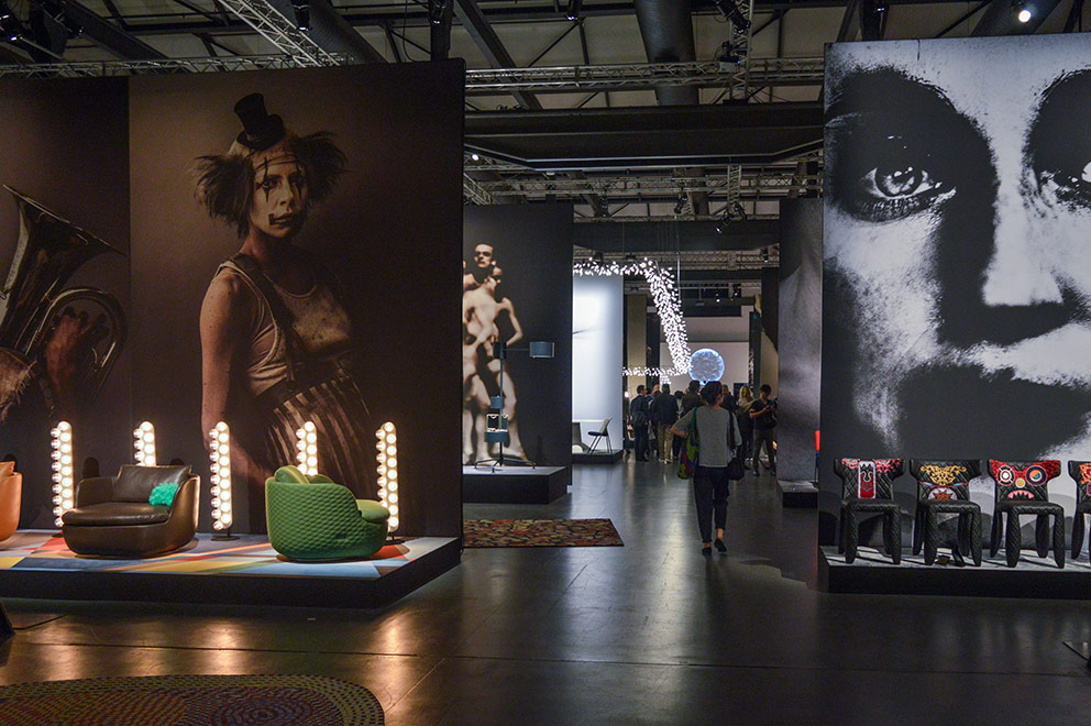 Bei Teppichen, aber auch bei gemusterten Bezugsstoffen, hat sich in den vergangenen Jahren viel getan. Besonders wild treibt es nun Moooi, wo man auch auf Marcel Wanders „Monster Chair“ traf, der in einer Special Edition auf abgestepptem Grund Geister indigener Idole beschwörte. In der Halle in der Zona Tortona, in der Moooi seine „Signature“-Collection in einer opulenten Show präsentierte, dominierten aber vor allem bedruckte und gewebte Teppiche in den wildesten Mustern. Man muss solch opulente Überfülle nicht gut finden und ins kleine Wohnzimmer legen. Pfiff hat es aber durchaus. Digitale Technik macht es möglich. Bilder von grinsenden Lebensmitteln (Bas Kosters), vielfarbige Muster, die an afrikanische Vorbilder erinnerten (Bertjan Pot), rokokohafte Ansammlungen von Blüten und Insekten (Edvard van Vliet), altniederländische Blumenstilleben (Marcel Wanders) und abstrakte Pastellkreidebilder in freier Form (Front) beschleunigen auf jeden Fall die Transformation des traditionellen Teppichs zum Bild.