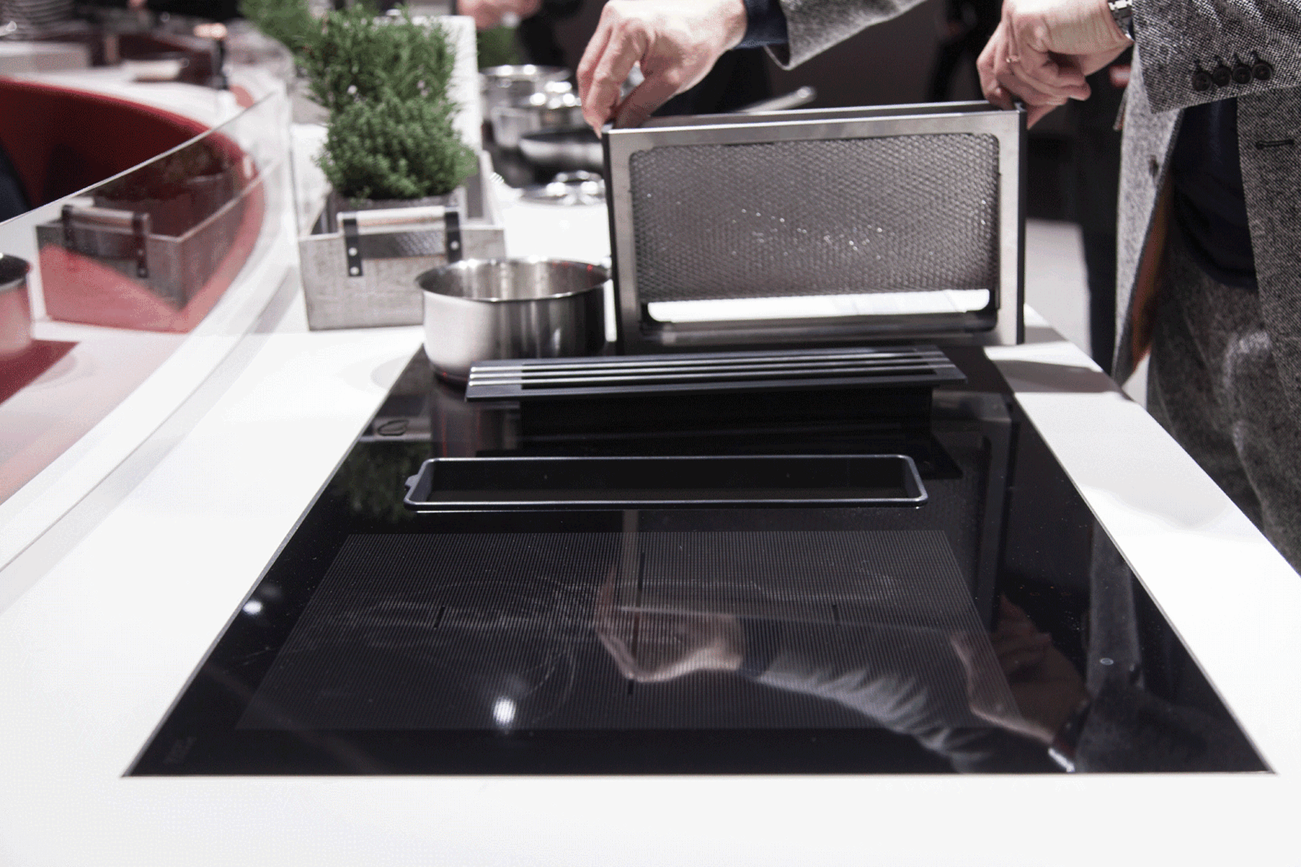 Die Muldenlüftung VL 011 von Gaggenau stellte 1976 einen vollkommen neuen Denkansatz dar. Im Grunde war er paradox: Der Rauch sollte nicht mehr nach oben, sondern nach unten abgeführt werden. Gaggenaus Idee: Ein elektrischer Abzug neben dem Herd ist viel näher an der Geruchsquelle und kann die Dämpfe sofort dort absaugen, wo sie entstehen. Diese Lösung, die in den Siebzigern noch keine weite Verbreitung fand, erfüllt heute genau die Anforderungen moderner Küchennutzung. Weder üble Gerüche noch unförmige Elektroeinbauten stören im neuen Wohnraum Küche. Deshalb haben wir uns auf der gerade zu Ende gegangenen Living Kitchen nach den besten dieser sogenannten Kochfeldabzüge umgeschaut. Das Angebot ist mittlerweile breit.