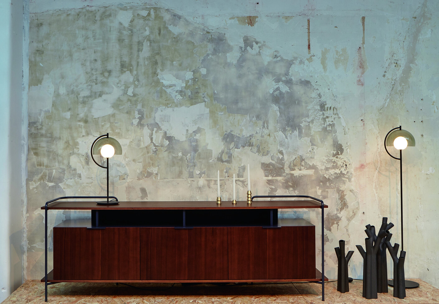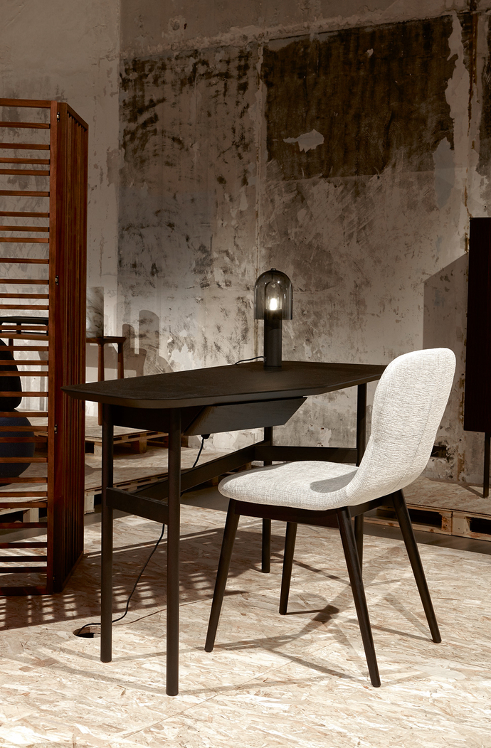 Ein Metallgestell aus Rundrohr, kombiniert mit dunklem Holz bildet für "Alando" und "Briord" von Ligne Roset die Basis. Der Schreibtisch und die Anrichte "Alando" stammt aus der Feder von Eric Jourdan, den Schreibtisch "Briord" hat Rémi Bouhaniche entworfen. Beide Möbel sind ideal geeignet für eine stilvolle Einrichtung des Home Office. Reduziert in der Form und mit klarer Linienführung zeigen sie den Stil moderner Klassiker. Im Detail ist "Alando" angelehnt an das Design der Fünfziger Jahre – die Rundrohrstruktur fasst dabei die rechteckigen Komponenten aus Nussbaum mit ein. Bei der Version als Anrichte verbirgt sich hinter der grifflosen Oberfläche der Klapptüren zudem viel Stauraum. Das zentrale Element wird bei "Alando" jeweils von zwei Platten eingefasst, die in ihrer Länge über dieses hinausragen. In Kombination mit dem schlanken Metallgestell und den fließenden Linien ergeben sich so spannende Kontraste. "Briord" von Rémi Bouhaniche für Ligne Roset zeigt ebenso ein luftiges Gestell, setzt in der Linienführung allerdings auf den optischen Effekt der Asymmetrie. Eine Luftaufnahme der Werke von Ligne Roset in Briord bot dem Designer hierfür die Inspiration. Für eine stetig aufgeräumte Arbeitsfläche ist die Tischplatte von "Briord" aus schwarz gebeiztem Eschenfurnier mit einer kleinen Schublade versehen, in der ein Laptop und die Schreibutensilien Platz finden. (am)