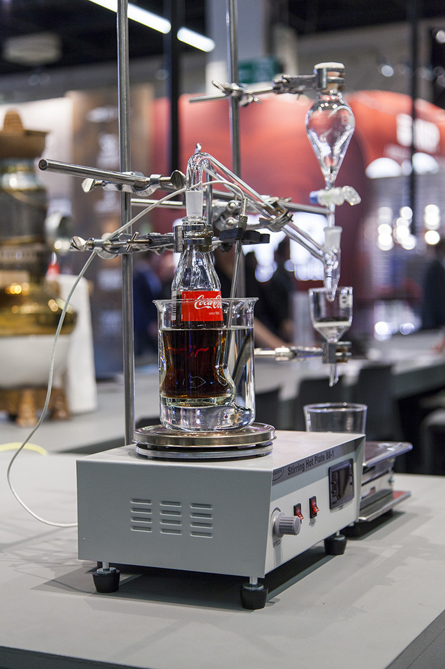 Einen Gegenpol zum perfekt Vorgekochten bildete der Stand der Zeitschrift Frame und Creative#olland. Die Installation „Real Thing“ von Helmut Smits zeigte, was herauskommt, wenn Coca-Cola im Labor in seine Bestandteile zerlegt wird. „Es muss Gedichte lesen lernen, wer Gedichte schreiben will“ behauptete Karl Gerstner in seinem Buch „Avant Garde Küche – Prinzipien statt Rezepte“. Das Buch ist 1990 erschienen. Damals musste noch „Gerichte essen lernen, wer Gerichte kochen will.“ Tempi passati.